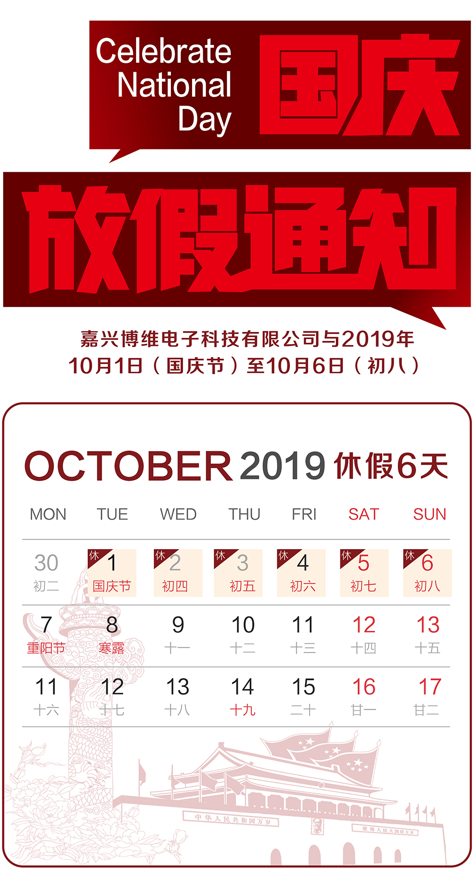 博維熱烈慶祝中華人民共和國成立70周年